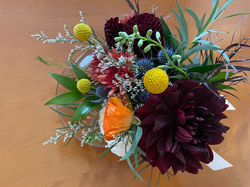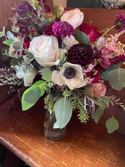 Moody burgundy seasonal blooms with pops of blush pink and white accents combined with lush greens