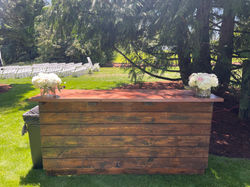 Loads of ruscus, olive, eucalyptus, ferns, and salal greens accented with textured, romantic white blooms for this couple.