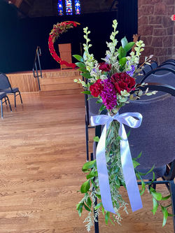 We utilized budget-friendly white flowers with lush greens to create a timeless and classic look that didn't break the bank!