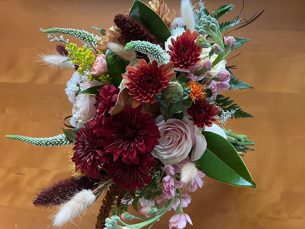 Moody burgundy seasonal blooms with pops of blush pink and white accents combined with lush greens